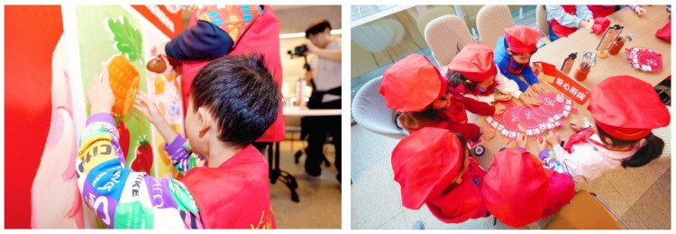 20名小記者化身“愛心助力官”,介紹并邀請消費(fèi)者加入“捐一元村校廚房煥新”項(xiàng)目,小朋友現(xiàn)場用“捐一元”臺卡元素制作冰箱貼,贈送給參與“捐一元”項(xiàng)目的消費(fèi)者。